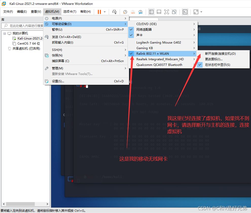 如果沒有,請注意是否開啟了網(wǎng)卡在虛擬機的連接,如下圖