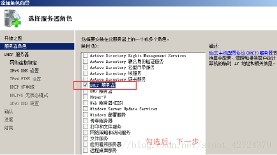 7.勾選DHCP服務器后,單擊“下一步”按鈕,屏幕上將會彈出DHCP服務器簡介窗口,默認下一步;