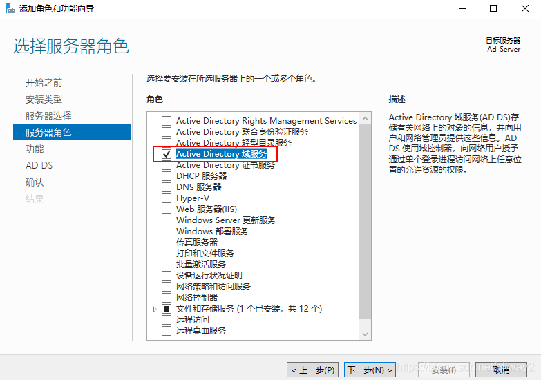 (4)選擇添加AD域服務(wù)(Active Directory 域服務(wù)),同時添加所需功能。