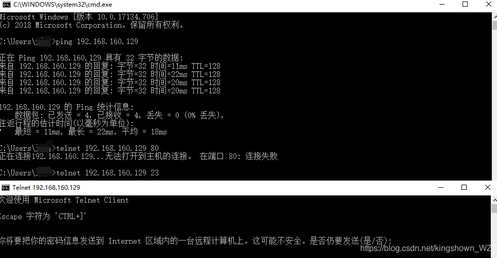3、Telnet連接遠(yuǎn)程主機(jī)