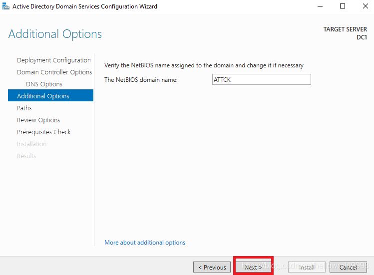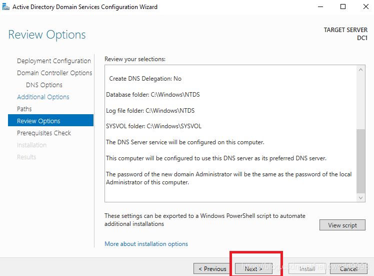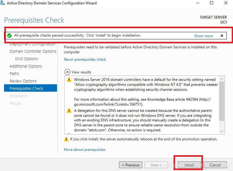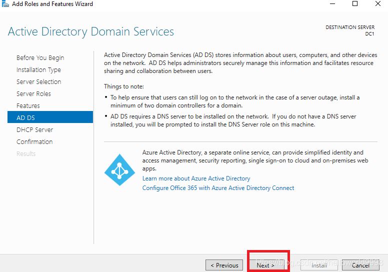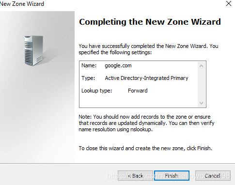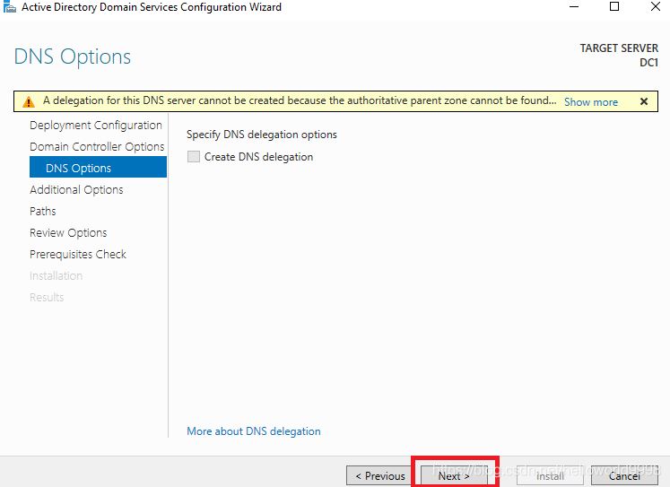 此時(shí)會(huì)自動(dòng)安裝DNS服務(wù)器,并把域控DC1的ip地址進(jìn)行解析。