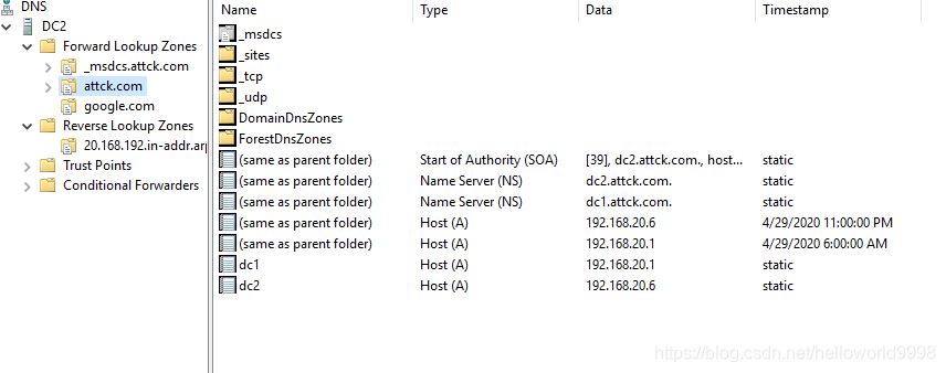 可以看到在dc2中,DNS記錄已經(jīng)同步過來。