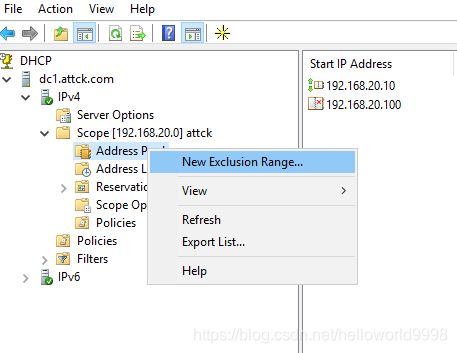 添加一個(gè)排除地址,不用于分配,此處保留192.168.20.100為web服務(wù)器地址。