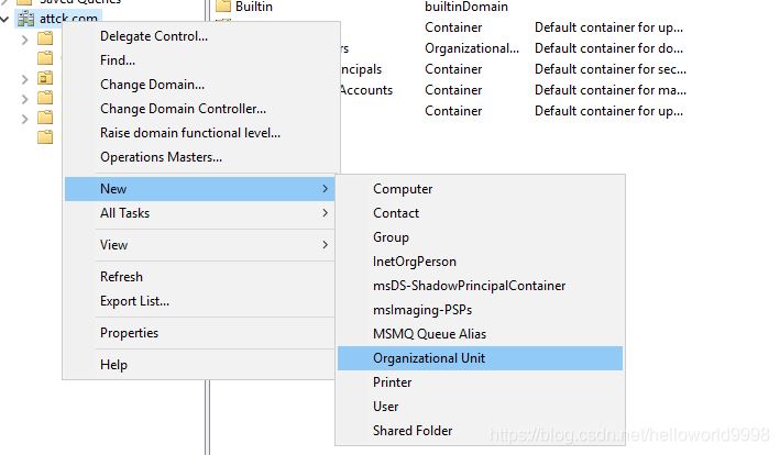 輸入OU的名字,這里我輸入attck.com,然后右鍵attck.com依次添加如下OU