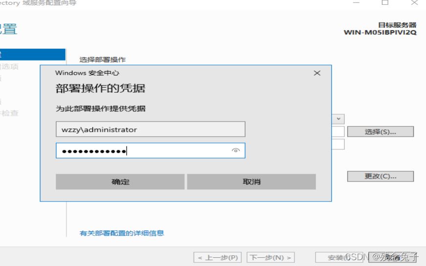 點(diǎn)擊更改以后,會(huì)彈出輸入賬戶密碼的界面,在此我們輸入benet\administrator的賬戶密碼---確定---下一步
