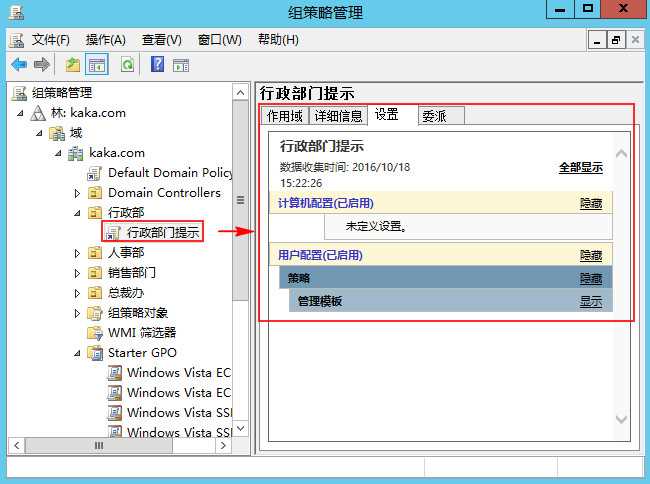 4.這樣在行政部的OU下面就會有一條組策略的記錄剛建立好的,而在設(shè)置里面可以看到當(dāng)前都配置的條目,點(diǎn)擊右邊的顯示可以逐條向下顯示: