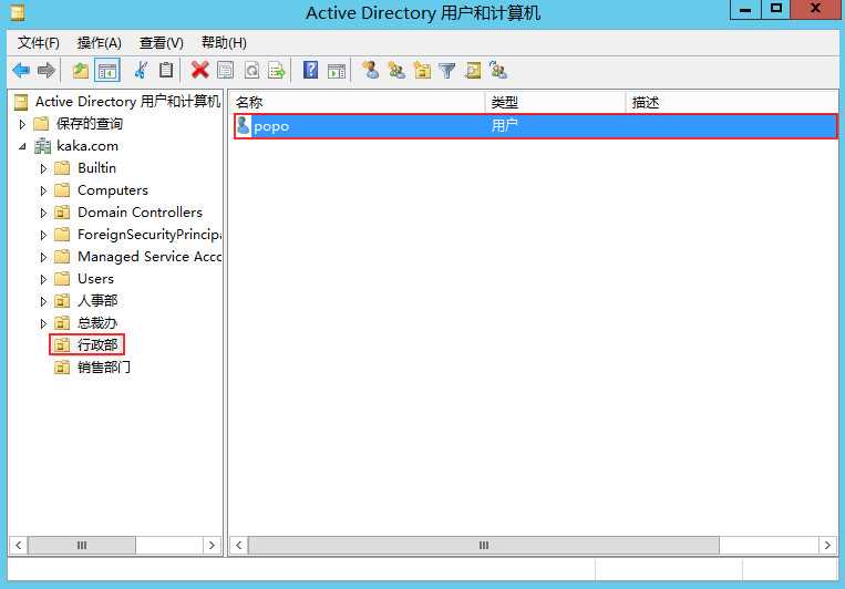 1.首先在AD域下要有行政部門的OU且已建立有popo的用戶。