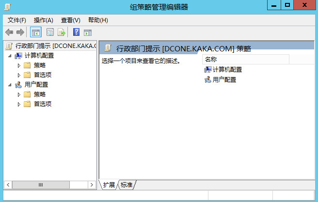 4.在打開的組策略管理界面里面,林kaka下的DefaultDomain Policy為全局策略,而只對計(jì)算機(jī)做了配置。