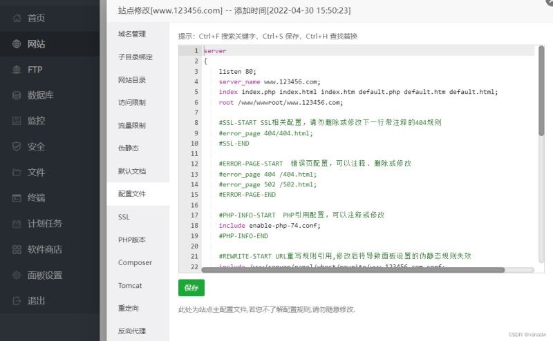 第二個是網(wǎng)站本身的配置文件,在/www/server/panel/vhost/nginx/ 路徑的文件夾下。