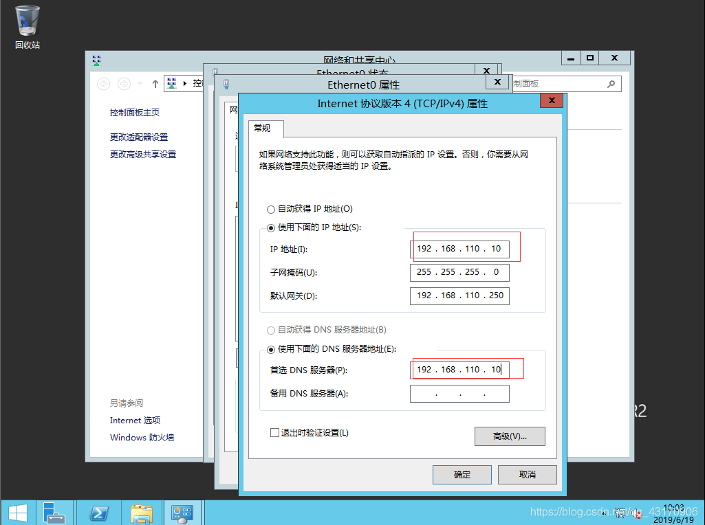 3:第一臺域控制器也是DNS服務(wù)器(好像2012是這樣的,其他版本不知道),所以IP和DNS設(shè)置必須是一樣的,網(wǎng)關(guān)DNS也需要設(shè)置,(不設(shè)置的話客戶機加域會出現(xiàn)問題)具體情況以網(wǎng)絡(luò)構(gòu)造而定。