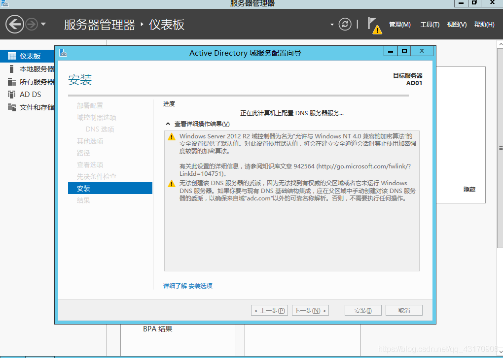 2012域控服務(wù)器自動安裝DNS,至此域控制器安裝完成