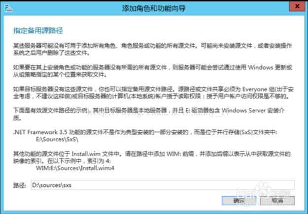 添加角色和功能 安裝制定 備用路徑 網上系統(tǒng)文件sxs簡包 D:\sources\sxs 未成功