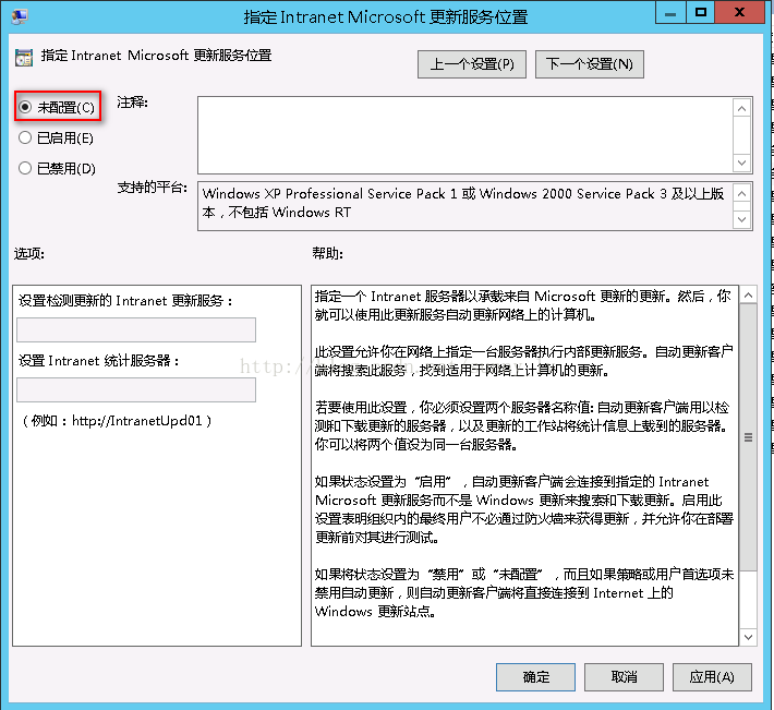 點擊【計算機配置】->【管理模板】->【windows 組件】->【windows 更新】,然后雙擊【指定 Intranet Microsoft 更新服務位置】選擇為【未配置】,參考下圖 未成功