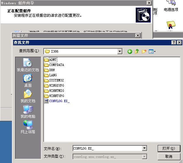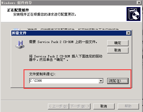 6、點(diǎn)擊【下一步】配置組件,期間會(huì)提示需要一些文件,我們只需要將文件來源選擇到剛開始解壓出來的i386文件夾,點(diǎn)擊確定即可。