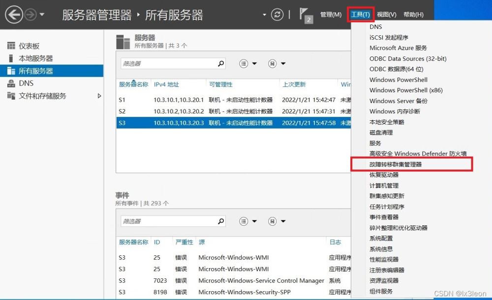 安裝完成后,在S1或任意1臺節(jié)點上打開服務器管理器 – 工具 –