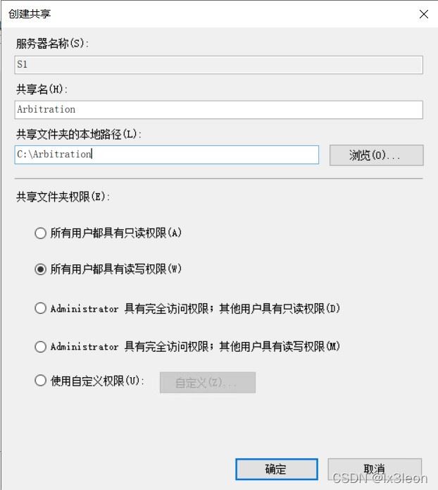 在S1上創(chuàng)建一個見證文件夾,選擇所有用戶都具有讀寫權限,確定完成。