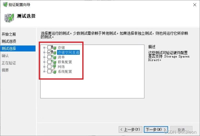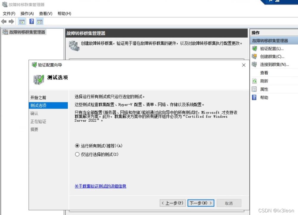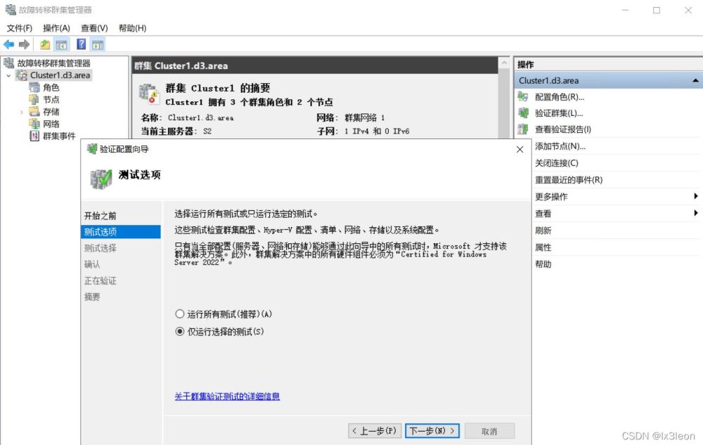 在開啟S2D之前,先來檢查一下當前是否滿足創(chuàng)建S2D的條件。在S2或S3節(jié)點的故障轉移群集管理器中,選擇驗證群集,然后選擇<僅運行選擇的測試>。