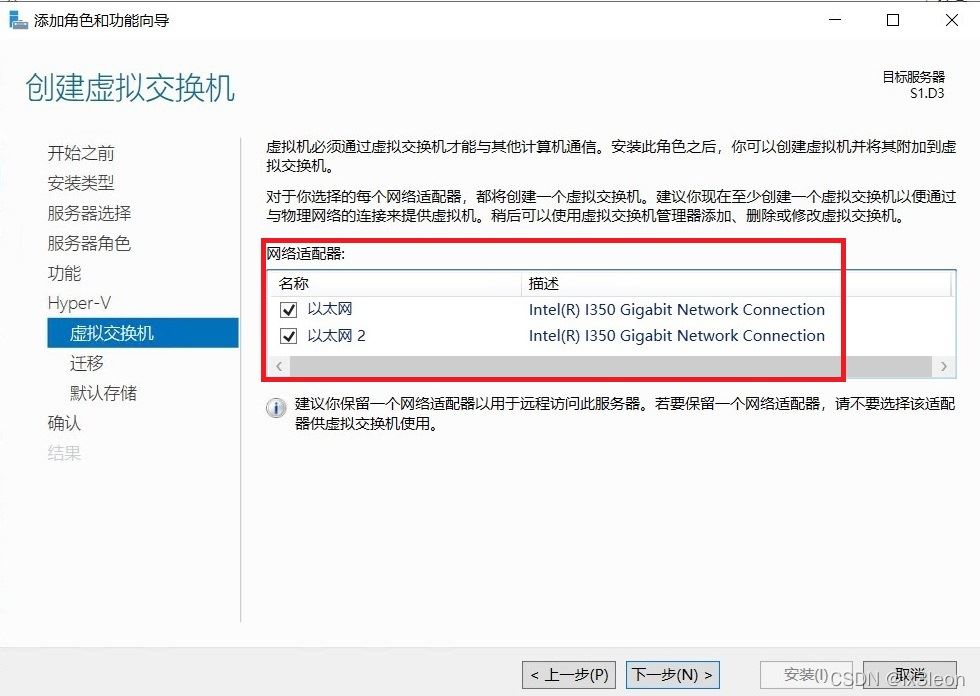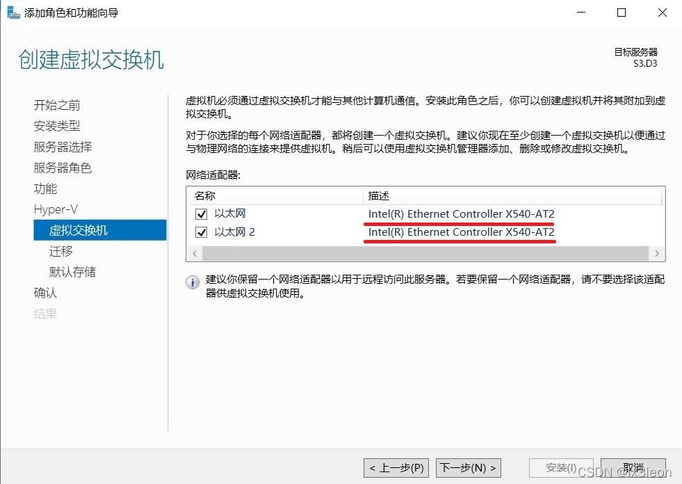 兩個網卡都選上,其他默認。注意:筆者的S3網卡與另外2臺不一樣,在這一步沒有影響,但后面的虛擬交換機要改成一致的名稱才行,否則虛擬機遷移會出問題。