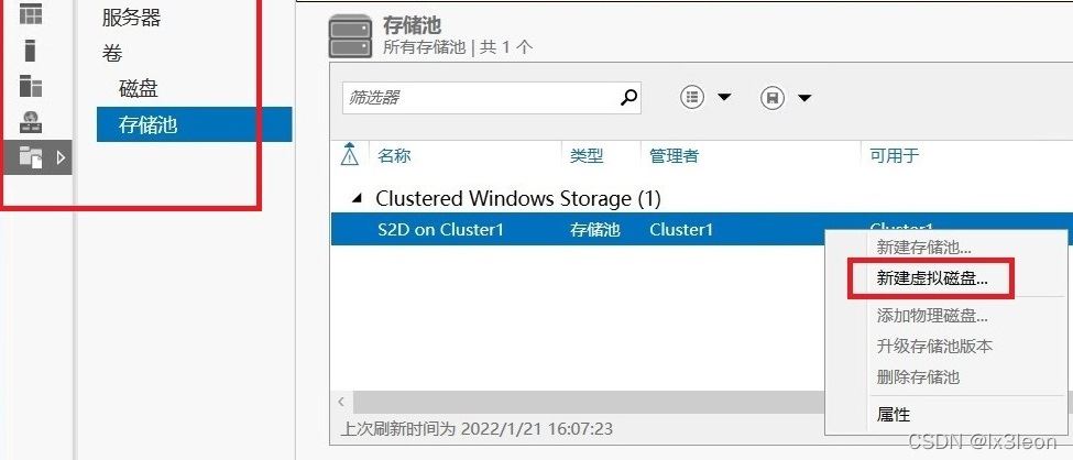 Cluster1的存儲池,選中它新建虛擬磁盤。