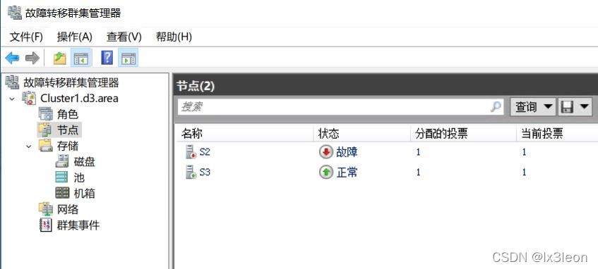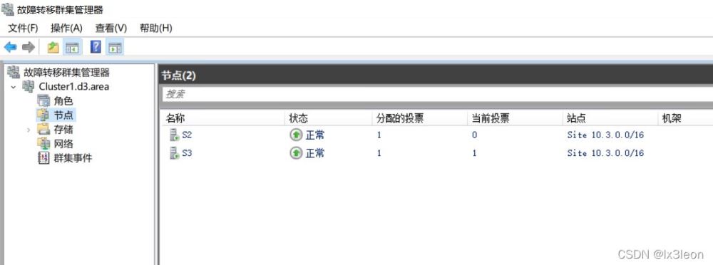 群集創(chuàng)建完成后,在節(jié)點菜單中就可以看到S2和S3均處于在線狀態(tài)。