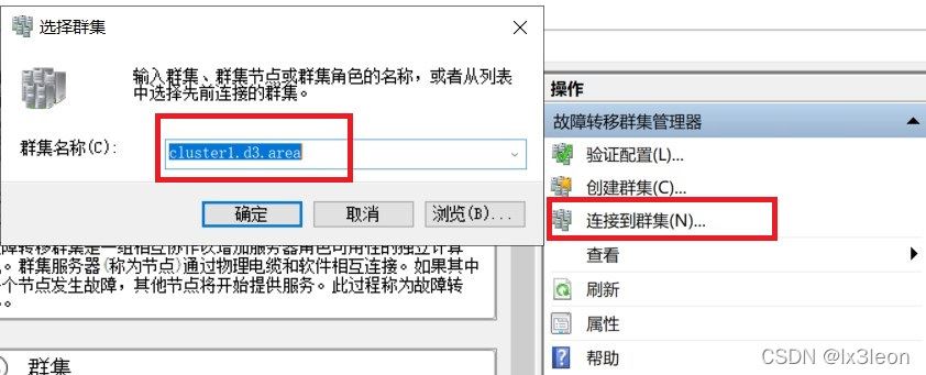 接下來打開故障轉移群集管理器,如果沒有顯示群集的話,手動連接到群集。