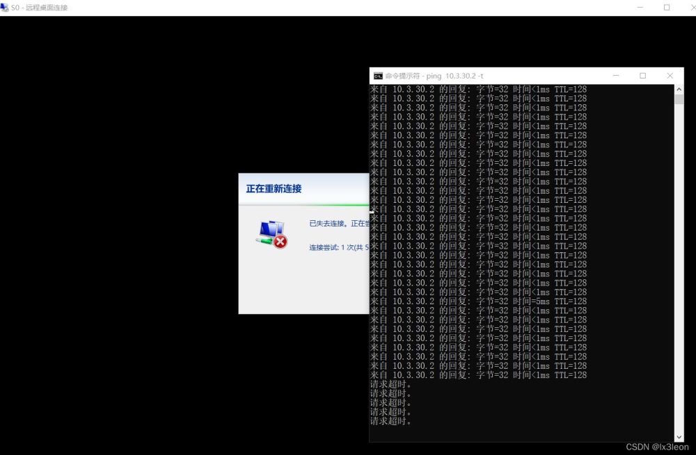 開啟VM1的遠程桌面并關閉防火墻,然后遠程桌面登錄,并持續(xù)ping它的IP地址。