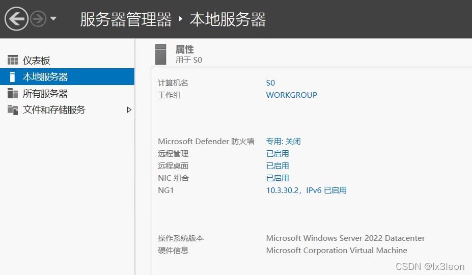 虛擬機系統(tǒng)安裝完成后,進入虛擬機里的系統(tǒng),服務器管理器 – 本地服務器 -