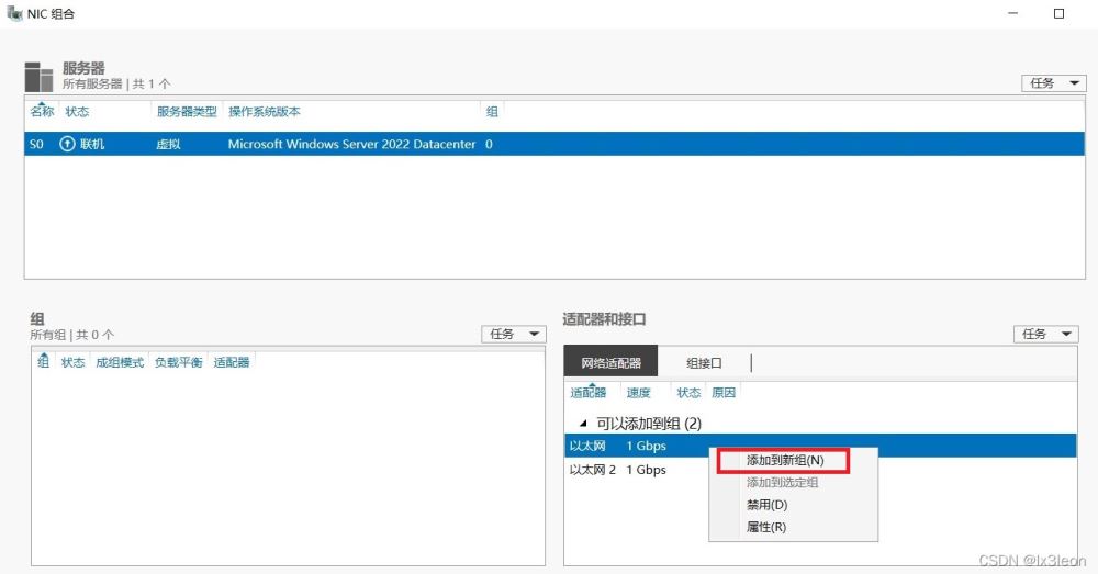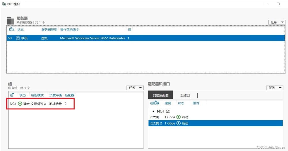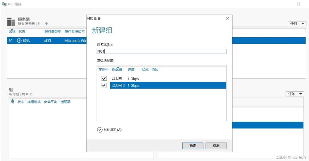 啟用NIC組合,將2個網卡添加到1個組中,組名設為NG1。