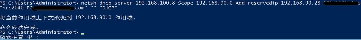 這里搭建DHCP服務(wù)器,相信大家都會(huì)了,就不再贅述。搭建好DHCP服務(wù)器以后,把相應(yīng)的作用域都建立好,然后用管理員打開(kāi)powershell導(dǎo)入保留地址命令(當(dāng)然可以將之前保留的所有更改好的文本直接全部復(fù)制黏貼到powershell內(nèi)進(jìn)行執(zhí)行)