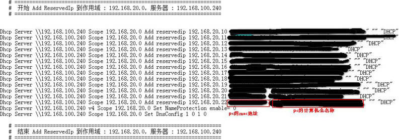 netsh dhcp server192.168.100.8 Scope 192.168.20.0 Add reservedip 192.168.20.10 c4346b019c74"hosdflcameeting01.hosdfldomain.com" "" "DHCP"