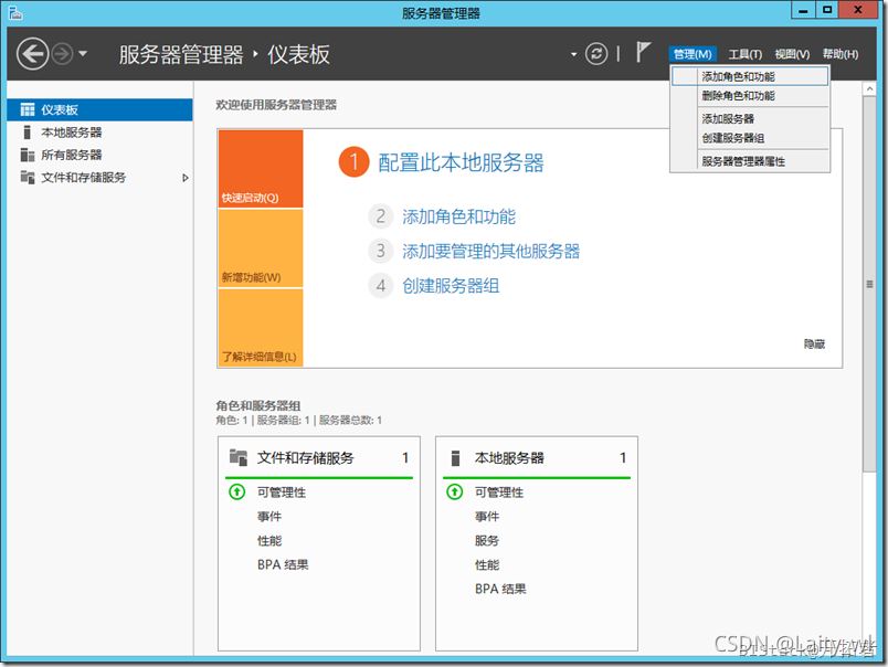 打開服務(wù)器管理器,點擊管理菜單,選擇【添加角色和功能】,并按照如下步驟執(zhí)行即可。