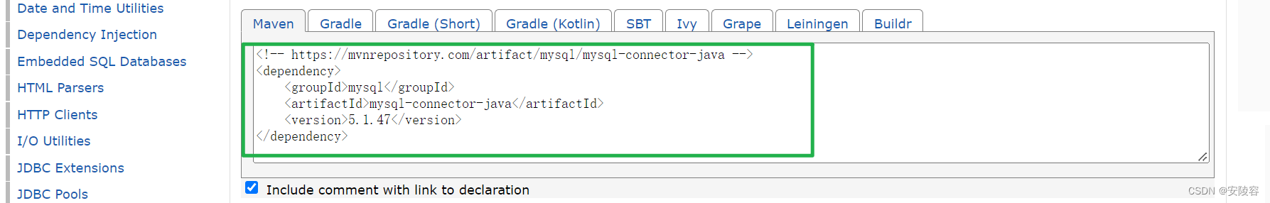 - 去中央倉庫上,找到 mysql 驅(qū)動包 Maven Repository MySQL Connector/J » 5.1.47 版本
