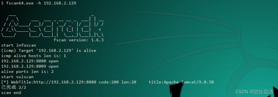 端口掃描,使用 fscan 掃描一下這個 ip 開啟的端口??梢钥闯鲞@個 ip 對應的服務器開啟了 8080 和 8009 端口。