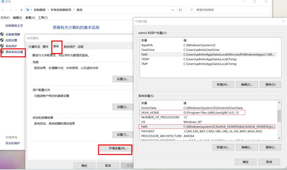 ②我的電腦,右鍵-屬性,高級系統(tǒng)設(shè)置,高級頁簽中的環(huán)境變量。