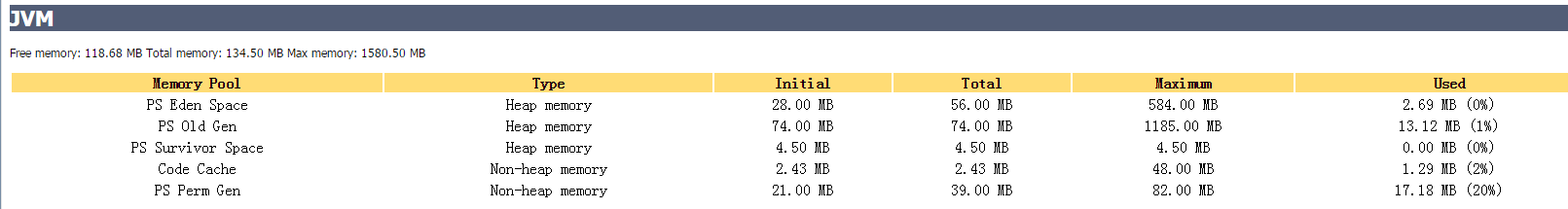 2、JVM的信息 (默認(rèn)的這些值都很低,我們可以配置)