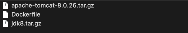 先創(chuàng)建一個目錄,然后新建一個Dockerfile文件,然后在該文件夾下下載如上兩個程序,下載后可解壓可不解壓,如下