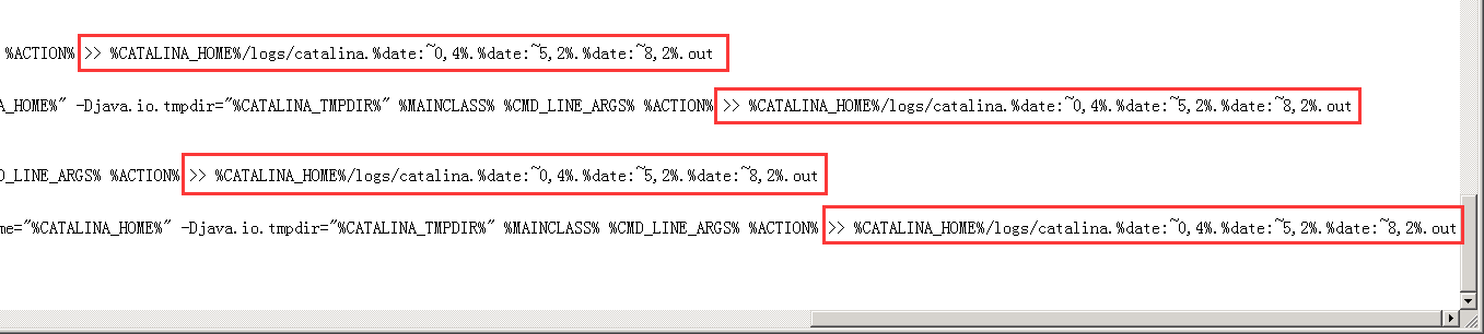 >> %CATALINA_HOME%/logs/catalina.%date:~0,4%.%date:~5,2%.%date:~8,2%.out