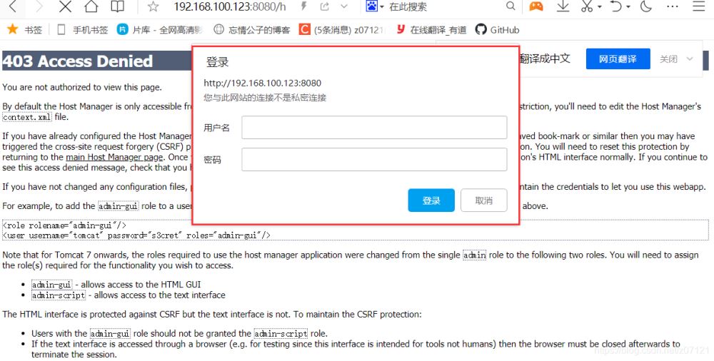 [root@localhost conf]# vim tomcat-users.xml //把下列兩行加到這個配置文件的倒數(shù)第二行 <role rolename="manager-gui"/> <user username="tomcat" password="s3cret" roles="manager-gui"/> [root@localhost tomcat]# ls bin conf lib logs README.md RUNNING.txt webapps BUILDING.txt CONTRIBUTING.md LICENSE NOTICE RELEASE-NOTES temp work [root@localhost tomcat]# cd webapps/ [root@localhost webapps]# ls docs examples host-manager manager ROOT [root@localhost webapps]# cd manager/ [root@localhost manager]# ls css images index.jsp META-INF status.xsd WEB-INF xform.xsl [root@localhost manager]# cd META-INF/ [root@localhost META-INF]# ls context.xml [root@localhost META-INF]# vim context.xml allow="192\.168\.100\.\d+|127\.\d+\.\d+\.\d+|::1|0:0:0:0:0:0:0:1" /> 在這個文件中加入要訪問的ip網(wǎng)段。