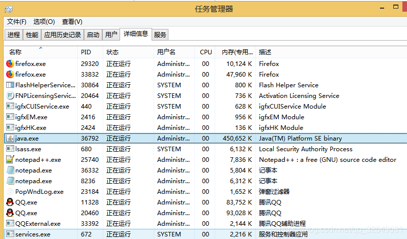 “任務(wù)欄”右鍵單擊選擇“任務(wù)管理器”,點擊“詳細(xì)信息”,找到PID列為4196的進(jìn)程,右擊殺掉這個進(jìn)程。再去點擊startup.bat??词欠袢匀婚W退。****