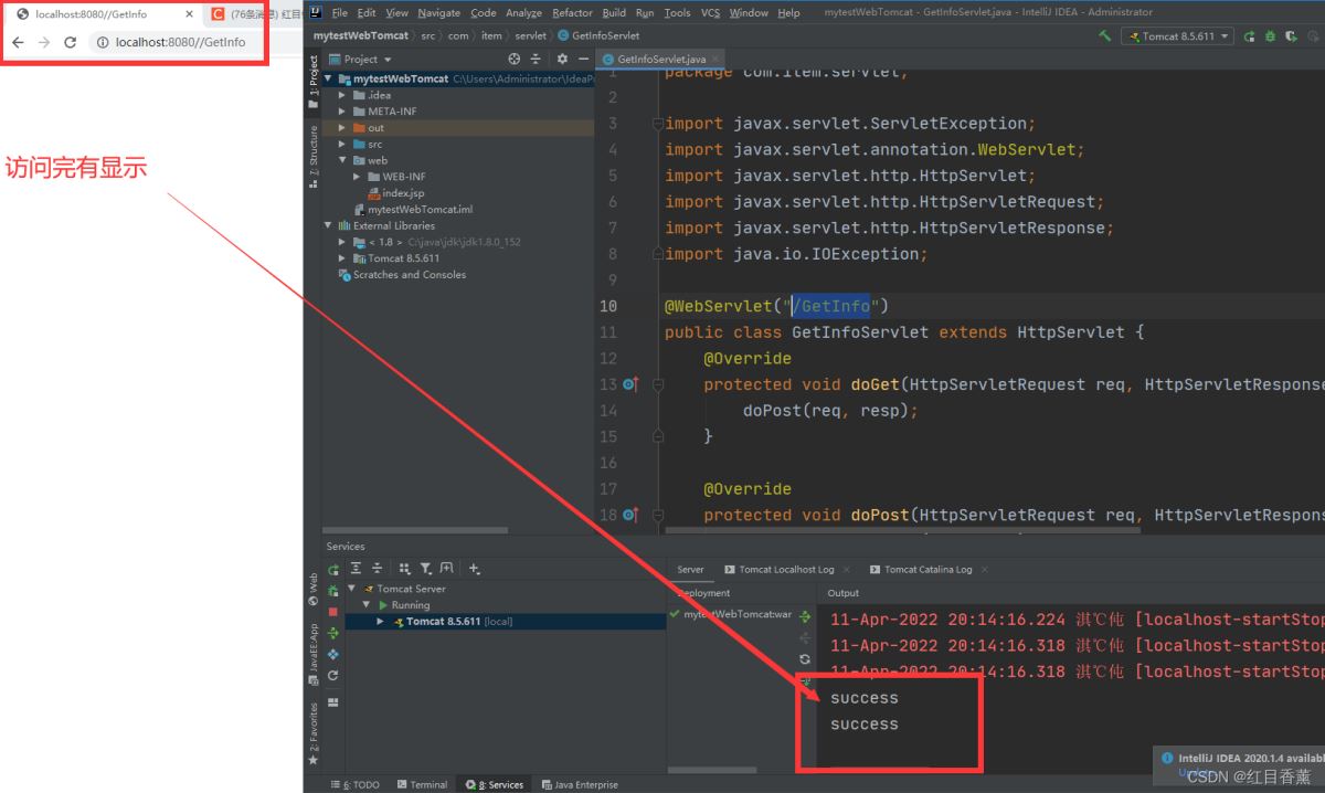 訪問完有顯示,說明成功。