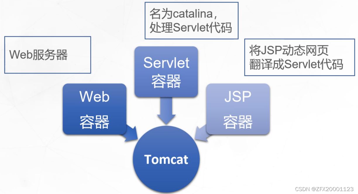 - Web 容器:完成 Web 服務器的功能HTTP HTTPS請求的接受和響應。