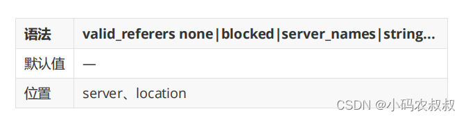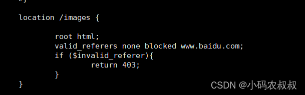 - nginx會(huì)通過(guò)查看referer自動(dòng)和valid_referers后面的內(nèi)容進(jìn)行匹配;