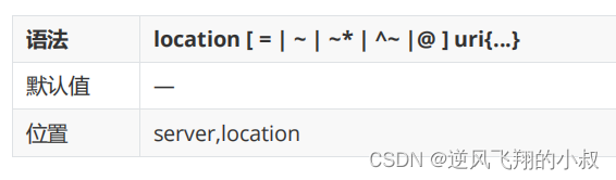 - ~ : 用于表示當前uri中包含了正則表達式,并且區(qū)分大小寫 ~*: 用于表示當前uri中包含了正則表達式,并且不區(qū)分大小寫;