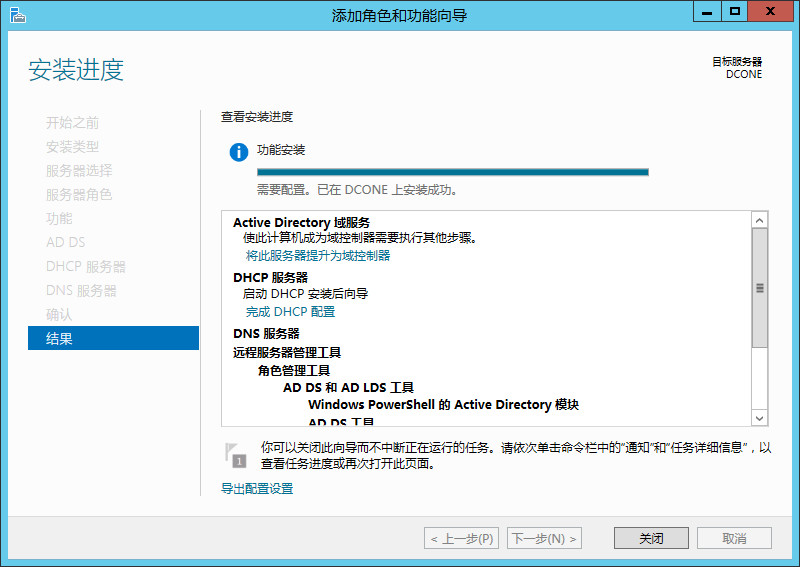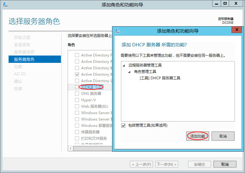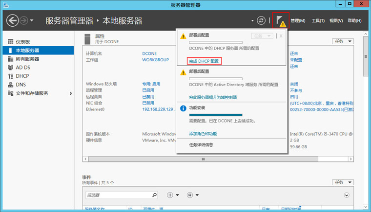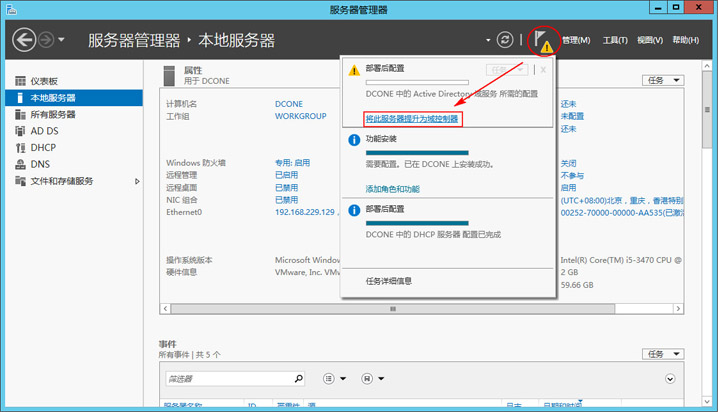 4.接下來需要把這臺DCONE提升為域控制器,且完成DHCP的簡單配置。
