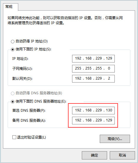 1.手動更改兩臺服務器的IP地址為靜態(tài)IP地址,并且添加DNS的時候,要互為對指的方式添加。