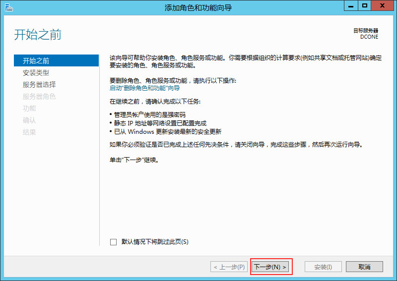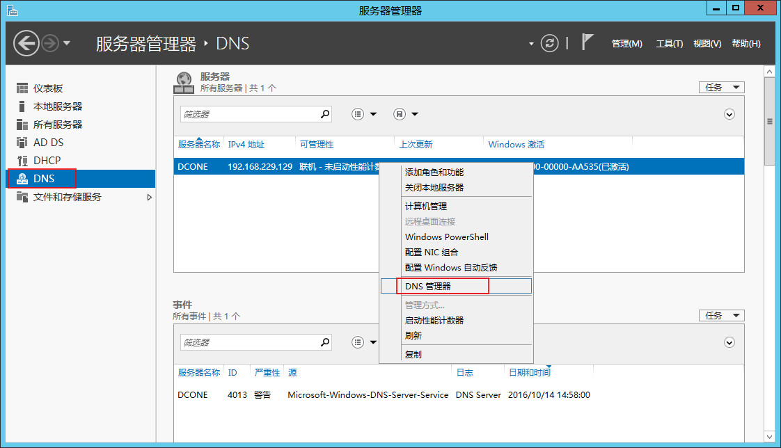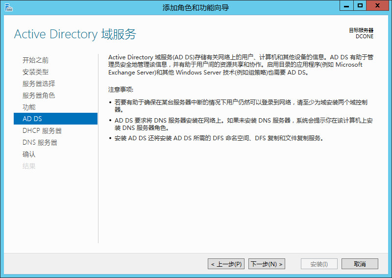主AD的計算機名稱為:DCONE 靜態(tài)IP地址為:192.168.229.129/24