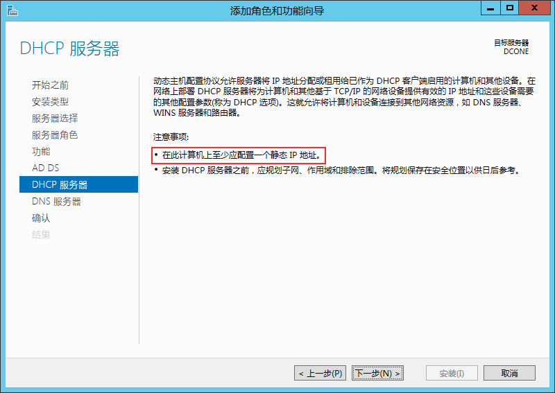 而把IP地址都更改為靜態(tài)IP是為了在同時選取服務器角色的時候,不至于提示因為不是靜態(tài)IP而無法建立DHCP和DNS。