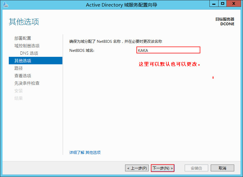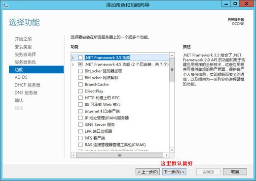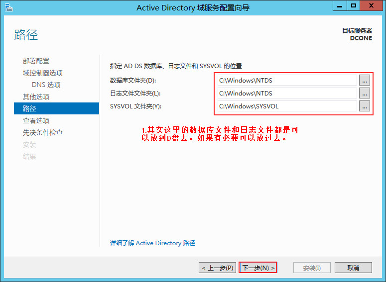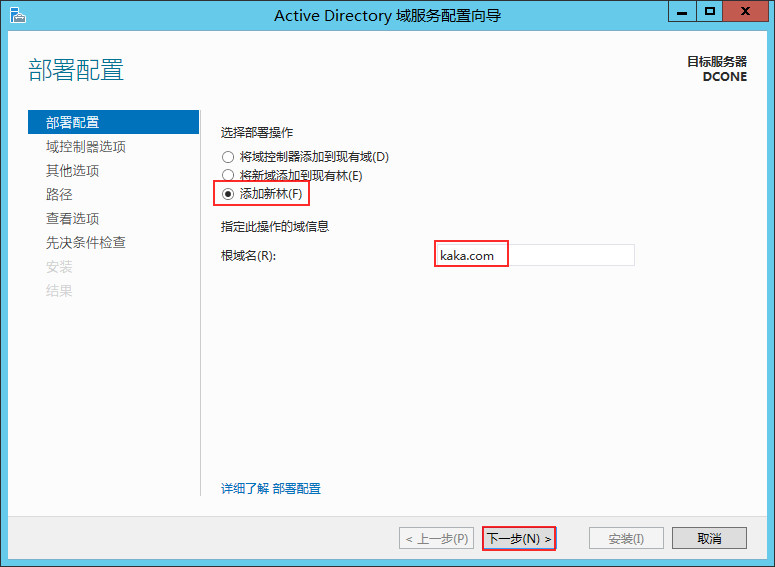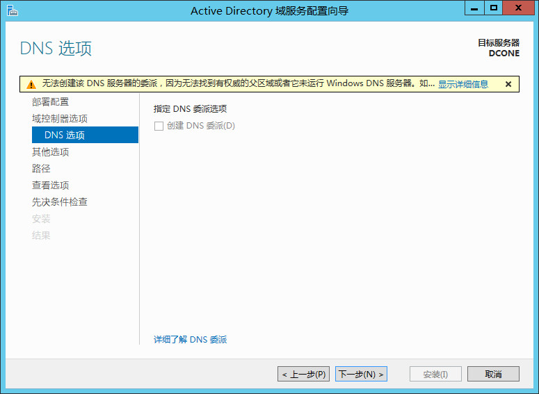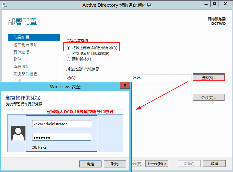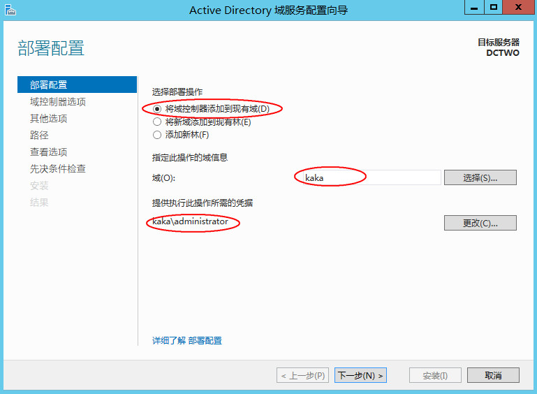 之前已經(jīng)知道主DCONE已經(jīng)提升自己成為了域控制器,現(xiàn)在要將DCTWO跟DCONE關聯(lián)成冗余關系,那么也是通過提升域控制器的選項來進行的,不同的是加入到現(xiàn)有域,而不是直接通過計算機的高級設置加入域,這里要特別注意了: