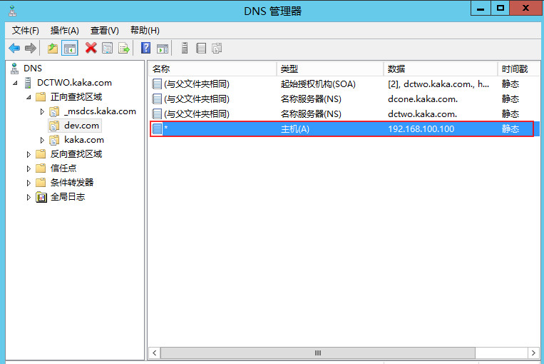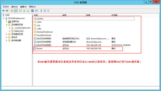 當完成以后,接下來去看看,DCTWO上面的DNS有沒有被同步過來??梢钥吹矫黠@已經(jīng)被同步過來。