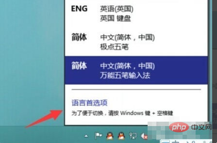 1、首先打開電腦,在任務(wù)欄的語言地方點(diǎn)擊一下再點(diǎn)擊語言首選項(xiàng)。
